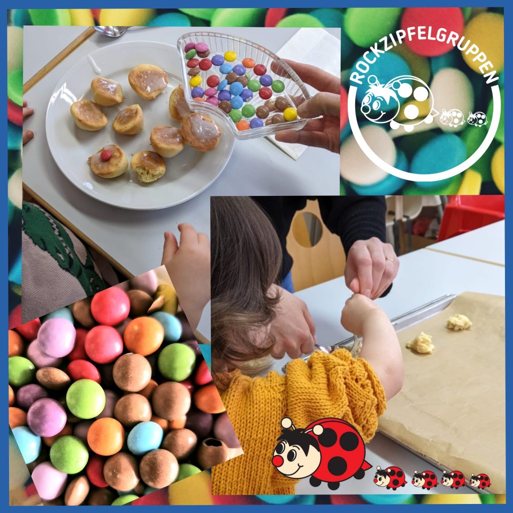 Rockzipfelgruppen wurde der Fasching so richtig versüßt. Die Kinder haben in beiden Rockzipfel-Gruppen, Blumenstraße und Nadenberg, gemeinsam mit ihren Eltern fleißig Amerikaner gebacken, bunt verziert und natürlich vernascht.
