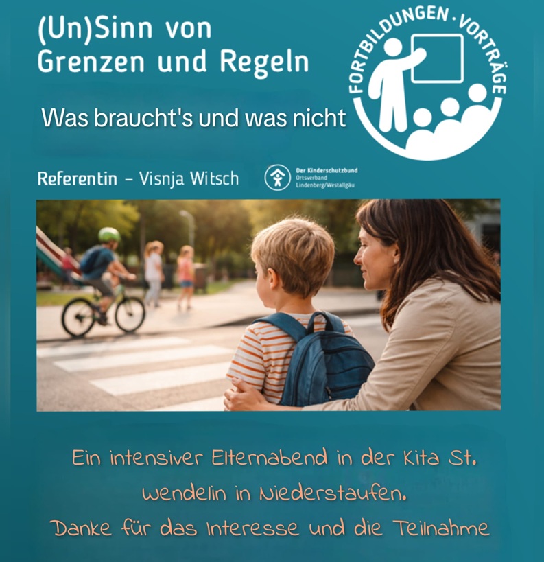 Vortrag „(Un)Sinn von Grenzen und Regeln“ – 20 Teilnehmende – Kita St. Wendelin Niederstaufen
