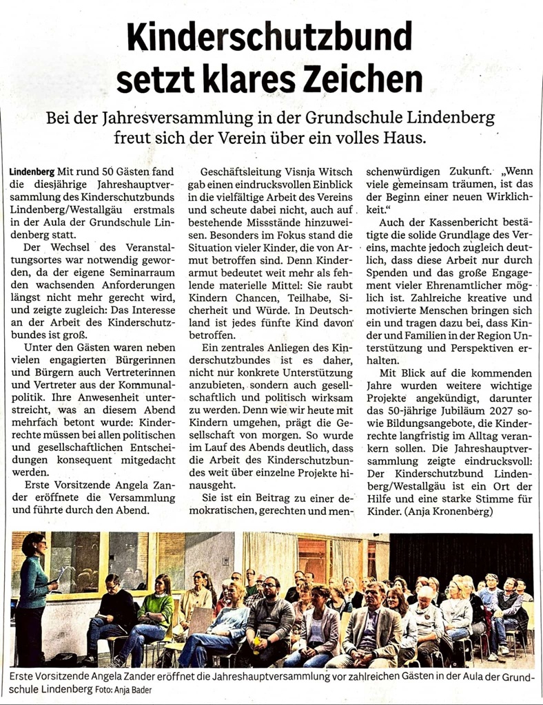 Danke, liebe Heike, für deinen großen Einsatz, für deine Idee, deinen Mut und alles, was du damit für Kinder und Familien in Lindenberg und im Westallgäu geleistet hast. Wir wünschen dir von Herzen für deinen neuen Lebensabschnitt alles Gute, viele schöne Momente und weiterhin Menschen an deiner Seite, die dich mit derselben Wertschätzung begleiten, mit der du so viele Jahre andere begleitet hast.